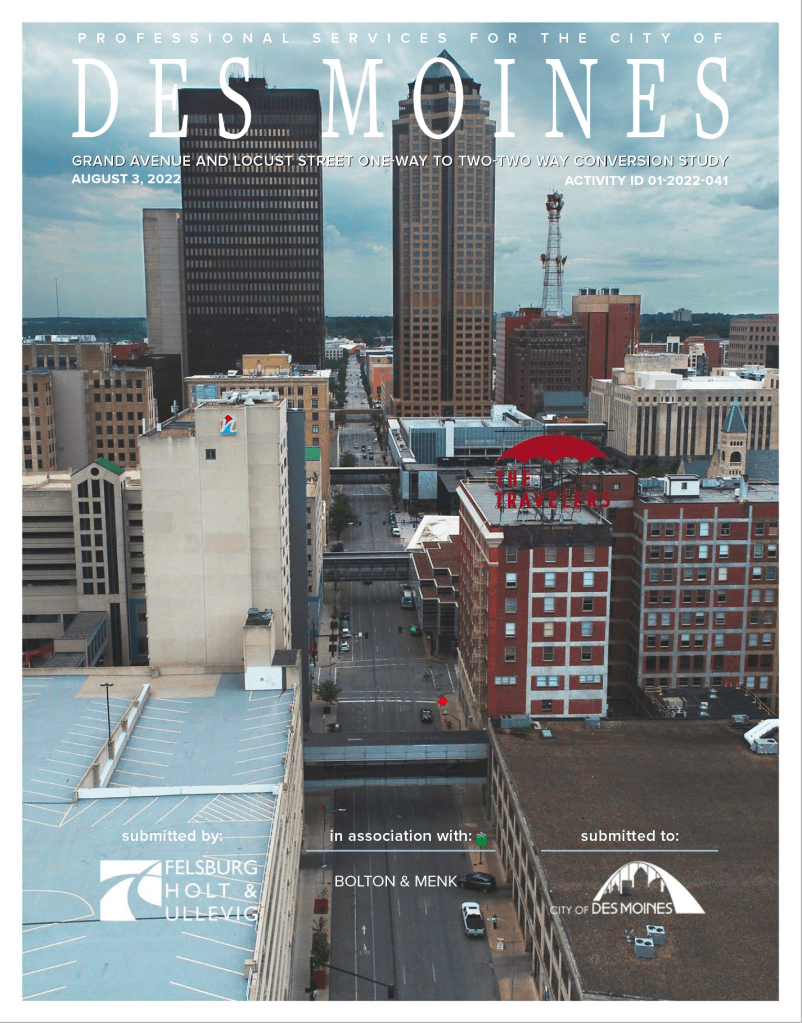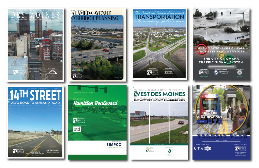 Currently, at Felsburg Holt & Ullevig (FHU), as part of the graphics group, I aid the project managers and marketing team in the pursuit of projects. The cover shown here was created for a proposal that was submitted to the City of Des Moines, Iowa.